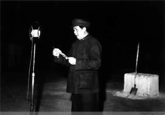 毛泽东在奠基仪式上宣读碑文
