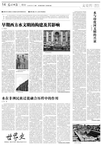 纵观古代西方文明史,希腊通过发达完善的城市水利系统,推动其文明的构建。而古代贤哲对水的自然物质属性、尼罗河泛滥和埃及文明之间关系的探索,触动了对埃及文化的借鉴和文化重构,打通了埃及文明和希腊文明之间的脉络,影响后世的水文学也发端于此。罗马帝国建立后,一方面继承了希腊水文明的要素并发扬光大,创造了人类历史上水利的奇迹,实现了国家治理;另一方面也借此显示对先前的文明包括希腊文明和埃及文明的超越,达到构建国家认同、显示国家强大的目的,水成为构建国家权力的重要途径。罗马帝国的水利文明也对之后的世界文明产生了广泛影响,包括城市大规模调水供水原理、水利技术、沐浴设施、冲水厕所、喷泉等,从理念到技术层面上的遗产仍然惠及当代。水成为沟通埃及文明、希腊文明、罗马文明以及后世社会的一种重要动力因素,水的文化动力作用在阿拉伯世界、美洲、亚洲等的发展过程中也有所体现。(作者:郑晓云,系云南省社会科学院研究员)