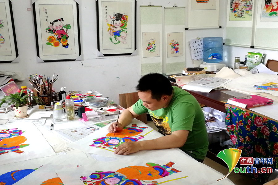 陈刚是年画非遗传承人,每天他都与年画相伴,从19岁开始,便一日不曾停歇。一幅幅年画在他的笔下栩栩如生,他告诉记者,年画就是他的生活,他的全部,他也将一直做下去。