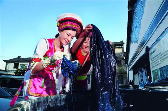 大理扎染是一种古老的印染手工艺。产品选用民间土布为胚料,从天然植物的根、茎、叶、皮中提取色素为染色。其纹路自然,颜色青翠,形象素雅,取材生动,格调大方,而且贴身柔软舒适。
