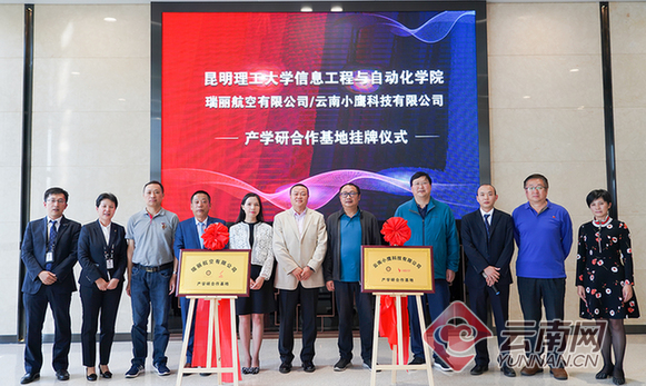 日前,瑞丽航空有限公司、云南小鹰科技有限公司与昆明理工大学信息工程与自动化学院产学研合作基地在瑞丽航空总部基地正式挂牌。
