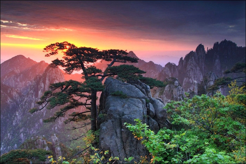 日出是游黄山不能错过的景致之一。当东方泛起鱼肚白,巍峨的高山众星拱月般的托出一轮光芒四射的红日,在奇松群峰间穿梭。若是此刻有云海相依相伴,日出美景则更为壮丽,整个黄山都沉浸在云蒸霞蔚的艳丽光彩之中。黄山适宜看日出的景点很多,如曙光亭、清凉台、狮子峰、丹霞峰、始信峰、棋石峰、贡阳山、光明顶、白鹅岭、石笋峰、玉屏峰、莲花峰、天都峰等处。其中以北海的清凉台和狮子峰观赏效果最佳,并且周围分布着北海宾馆,狮林大酒店,西海宾馆,排云楼大酒店等酒店,游客早起观赏日出较为方便。(中国网 记者张梦颖 姚育青)