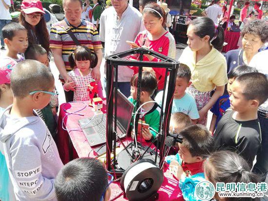 小朋友围着科普机器,一探究竟。