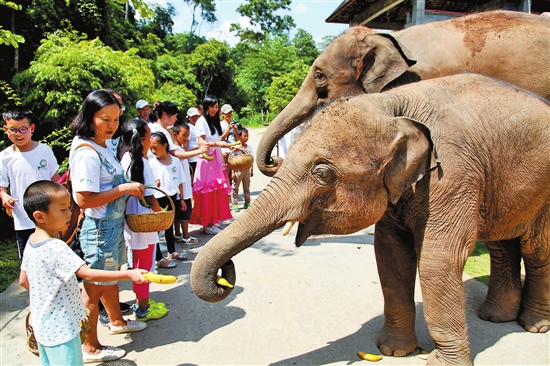 在亚洲象种源繁育中心,志愿者通过中心工作人员的讲解,了解了中心内每一头获救野生亚洲象的故事。他们还陪野生亚洲象进行上山野化训练、为亚洲象洗澡、准备美食等,通过这种体验式服务,唤起大家对保护生态环境和维护旅游环境的自觉意识。