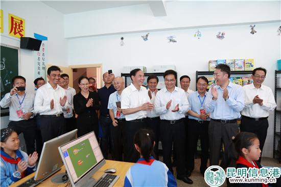 启动式后,参会部、省领导前往曲靖市麒麟区北关小学为科普实验室揭牌,并听取了曲靖市委市政府国家级高新技术产业开发区创建工作汇报。