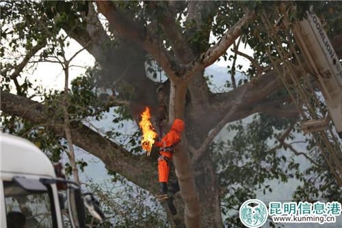 消防官兵首先攻克的第一个难点就是52米高处巨型蜂窝,蜂窝长约1.8米,参战官兵在保护绳的牵引下逐级攀爬至52米高的塔架处,采取先火攻后摘取的的战术,顺利摘除蜂窝,首战告捷。
