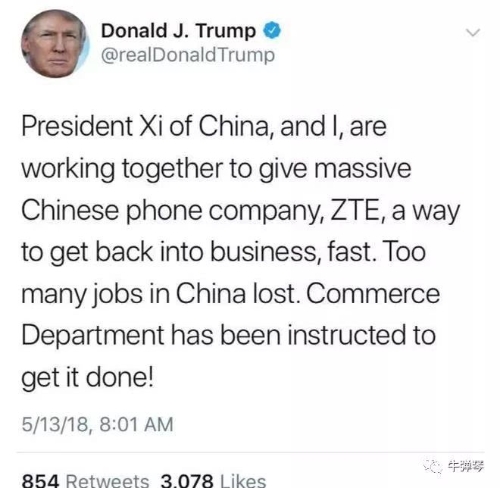 还有外界很关心的中兴事件。在此次华盛顿磋商前,美国总统特朗普在推特上明确表示: