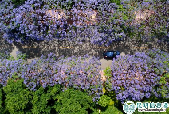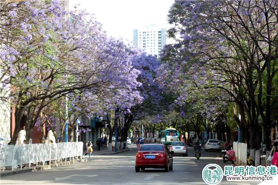 蓝花楹已是昆明街头最美丽的花卉之一。记者周密/摄