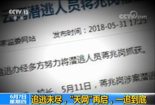5月9日,蒋兆岗涉案潜逃。5月11日,云南省公安厅发布A级通缉令追捕。5月30日,也就是通缉令发出20天之后,蒋兆岗被抓获。周雷说,抓获蒋兆岗的过程中,云南的公安、监委密切配合,从中央到地方各方面的追逃机制运转得也很顺畅,配合非常有力,“这样的及时行动,并非一日之功。”