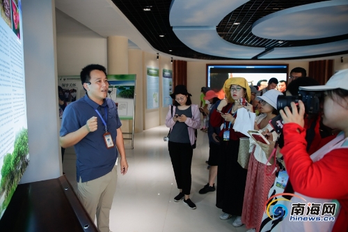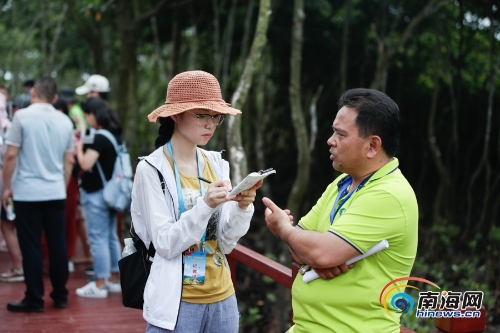 网媒记者采访东寨港国家级自然保护区工作人员。南海网记者刘洋 摄