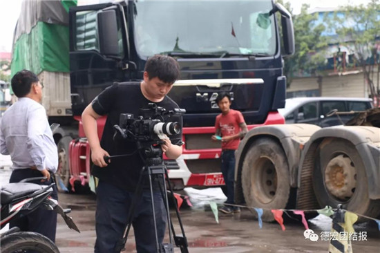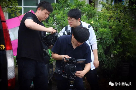 芒市是德宏的政治、经济和文化中心,摄制组的航拍镜头从金塔和银塔掠过芒市,田里刚刚吐翠的秧苗与这座城市构成了一幅唯美的“生态田园城市”画卷。蜿蜒的瑞丽江一直流向缅甸,见证着中缅两国“胞波”友谊,独特的区位优势,旖旎的自然风光,加之“国家重点开发开放试验区”的金字招牌,为此行拍摄提供了大量的视频、图片素材。六月的德宏细雨绵绵,为了给人们展现“有一个美丽的地方—德宏”,摄制组一行时常冒着大雨前往拍摄点,争分夺秒抓住阳光间隙进行拍摄,拍摄结束的时候大家衣服都已湿透。据了解,摄制组下一站将前往盈江进行取景拍摄。