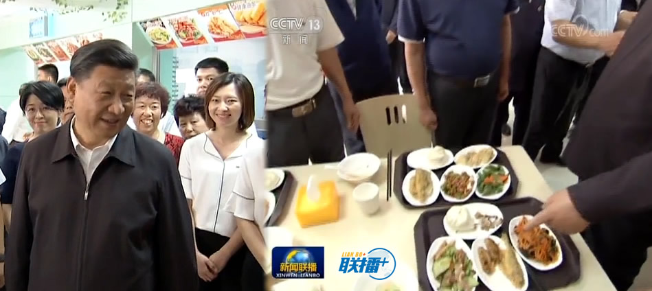 考察中,习近平走进社区便民食堂,同正在这里用餐的居民热情交谈,询问饭菜可不可口、价格贵不贵、对社区便民服务还有什么新要求。期间,他仔细寻问了“都谁可以在这里吃饭”,当听到居民都可以在这里用餐、以老年人为主时,总书记又问“多大岁数算老年人”,“来这里吃饭有什么标准”。当听到居民报的菜价后,他又接着问这个价钱“是三顿饭还是一顿饭”,并亲自查看餐桌上的饭菜。接着,总书记又走到打饭窗口前,指着一种菜品向工作人员问这种菜多少钱?当看到秋葵做成的素菜时,总书记称赞是很有营养的食品,还夸便民食堂卫生、菜做得好。