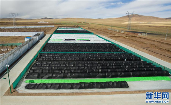 这是西藏“那曲高寒地区植树重大科技攻关项目”试验基地内的露地育苗区(3月2日无人机拍摄)。新华社记者 刘东君摄