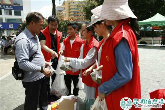 志愿者顾中国、艾庆玮、艾宣睿在新闻路篆塘农贸市场购买热乎乎的火腿粽子和咸鸭蛋,赶到金马碧鸡坊与志愿者汇合。志愿者“酒窝悄悄”带来了上小学的儿子,师大附中刚参加完高考的学生张云然和同是刚高考完的朋友一起来参加活动。