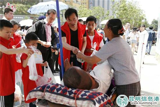 从出生就瘫痪由母亲用车推着乞讨的30多岁的郭大勇接过粽子和咸鸭蛋激动的眼圈红了,没想到从湖南来到昆明端午节还能收到节日礼物,感受到昆明的爱心和温暖。