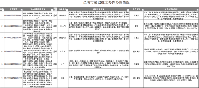 6686体育讯 6月27日,昆明市环境保护督察工作领导小组办公室公布了中央环境保护督察“回头看”第12批交办件办理情况,共15件。