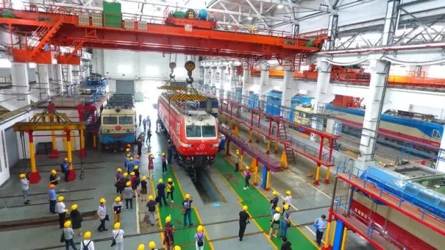 中国铁路西安局集团有限公司宝鸡机车检修厂联合检修库内,检修车间职工紧锣密鼓地进行着机车落车组装作业。