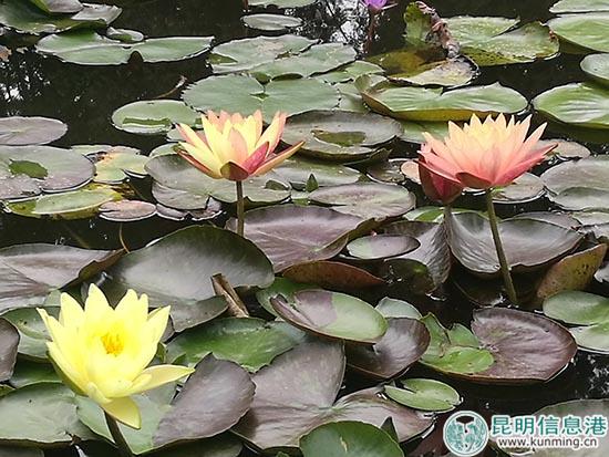 与此同时,为提升游客赏荷体验,公园在西区花海附近,开辟了十余块近景荷花塘,供游客近距离观赏和拍照。此季,也正好是睡莲的最佳观赏季,公园莲花池内一朵睡莲呈红黄两色交织的‘万维沙’正在盛开,吸引了不少游客驻足拍照。