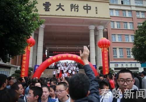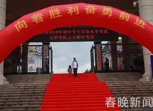 我省2018年中考今天拉开帷幕,昆明近7万初三毕业生奔赴考场。中考首日,依次举行了语文、物理、历史3个科目考试;明天,考生们将迎来数学、化学、思想品德几个科目。与高考相比,各考点周围的氛围要轻松许多,许多家长和老师特意穿上红色、旗袍等有寓意的衣服,多所学校准备也十分用心,希望考生们都能有一个好的开始。