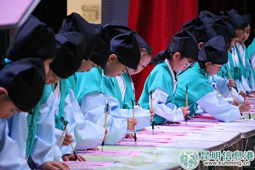 “螃呀么螃蟹(hai)哥 ,八呀八只脚 ,两只大眼睛 ,一个硬壳壳(guo)......”,结合昆明方言、童谣和传统诗歌,活动现场,全园9个班3-6岁的孩子们共带来了舞蹈《我和小树一块长》、诵读《三字经、弟子规》、绘本剧《月亮的味道》等11个节目,同时现场还进行了“书香家庭”、“书香班级”和“阅读之星”的颁奖仪式。