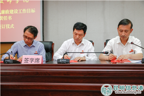 随后,学院党委书记周成岗、院长何良平与学院其余领导班子成员签订《2018年度党风廉政工作责任书》;党委书记周成岗与党支部书记签订《2018年度党建工作目标责任书》、《2018年度意识形态工作责任书》。