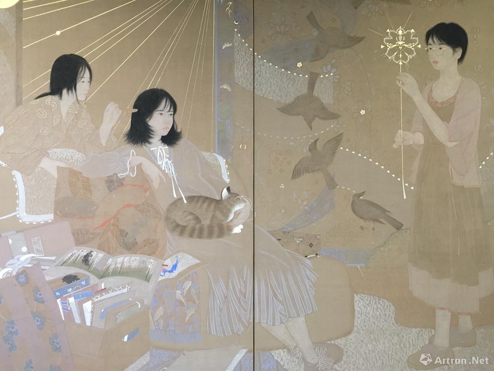 在2018年的天津美院优秀毕业展上,一层是在中国画学院的展厅,其中一组带有“日本风”的工笔人物引来了不少同学们的近观。