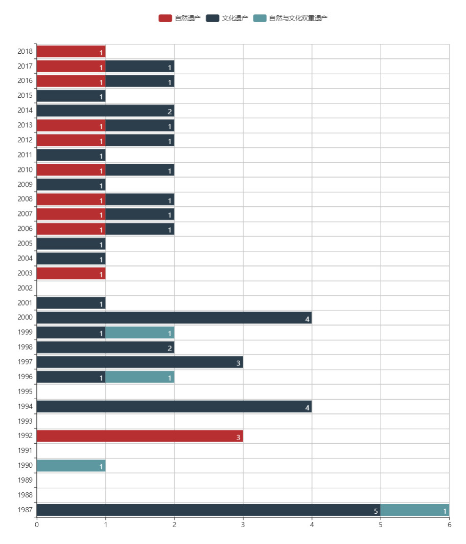 中国各年获得世界遗产情况