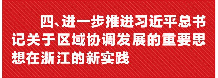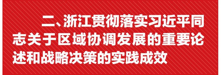 浙江省委、省政府深入贯彻落实习近平新时代中国特色社会主义思想,坚持一张蓝图绘到底,积极推进习近平总书记关于区域协调发展的重要思想在浙江的新实践。浙江省第十四次党代会作出了建设“六个浙江”,突出“四个强省”工作导向,推进“两个高水平”建设的重大战略决策,对区域协调发展作出了新的部署。浙江认真处理好“城与乡”“富与贫”和“内与外”三对关系,坚持走新型城市化道路,高质量推进大湾区大花园大通道大都市区“四大平台”建设,积极参与长江经济带建设和长三角合作发展,以“一带一路”为统领加快形成全面开放新格局,努力谱写浙江更高质量区域协调发展的崭新篇章。