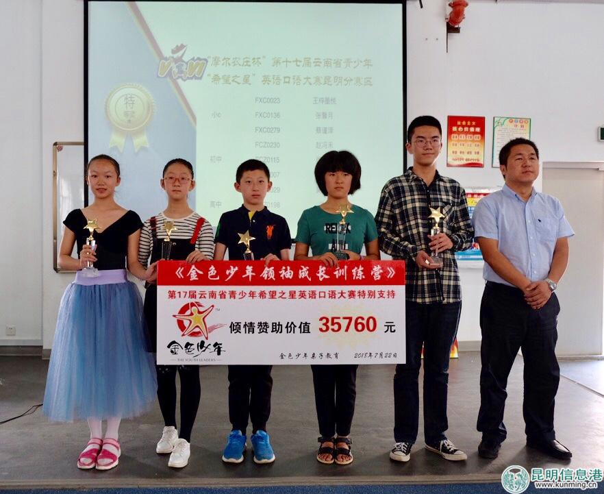 此外,斩获昆明赛区特等奖的选手,将获得由云南智德教育信息咨询有限公司(金色少年)及昆明环球博雅国际教育友情赞助的价值2980元、为期6天的少年成长夏令营一期。