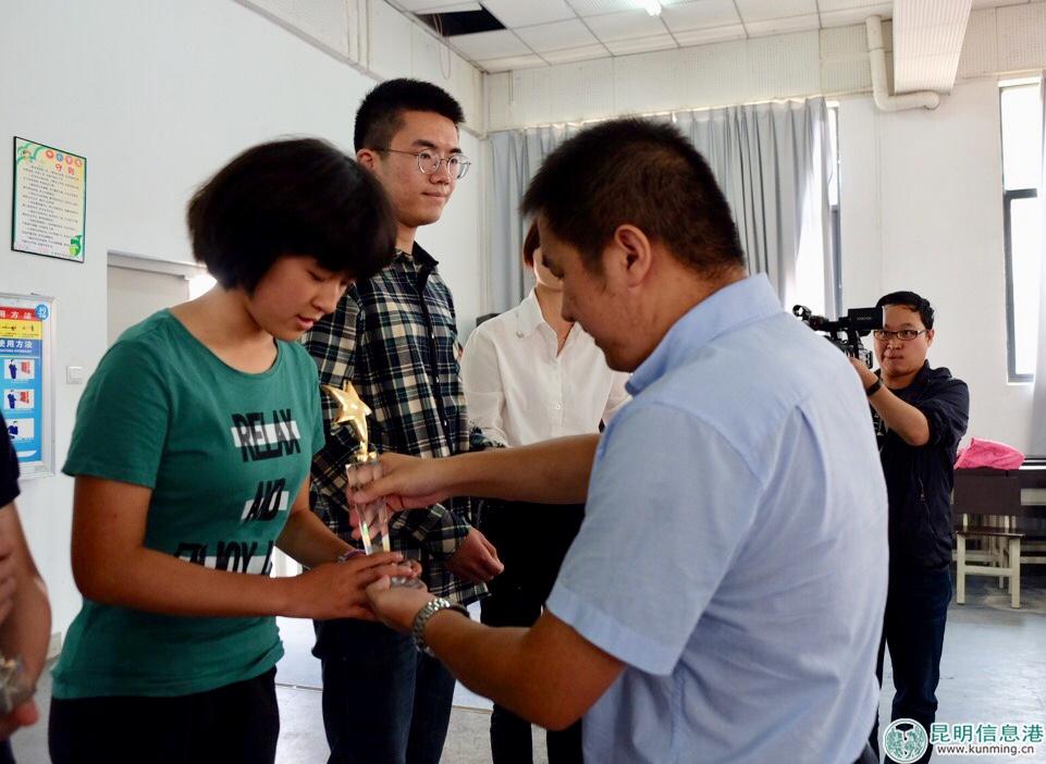 共青团昆明市委学校部部长李京臻为获奖者颁奖。记者张薇/摄