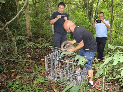 7月20日,经过3天的饲养观察,勐海县森林公安局在对穿山甲的生活习惯和放生环境综合评估后,安排专车专人将这只穿山甲带到距勐海县70多公里的西双版纳国家级自然保护区勐养片区,这里森林茂密、人迹罕至。