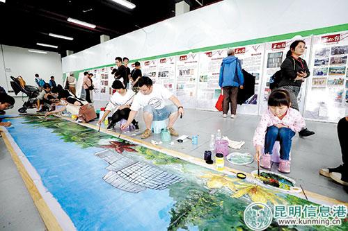 昆明植物园区内设有科普咨询服务点,为游客提供植物鉴赏、养花栽树及园林园艺等咨询服务;园区还准备了一条9.9米长的植物家园画卷,邀请拥有绘画功底的志愿者进行框架创作,再由市民填色,共同绘制热爱自然的长卷画作。
