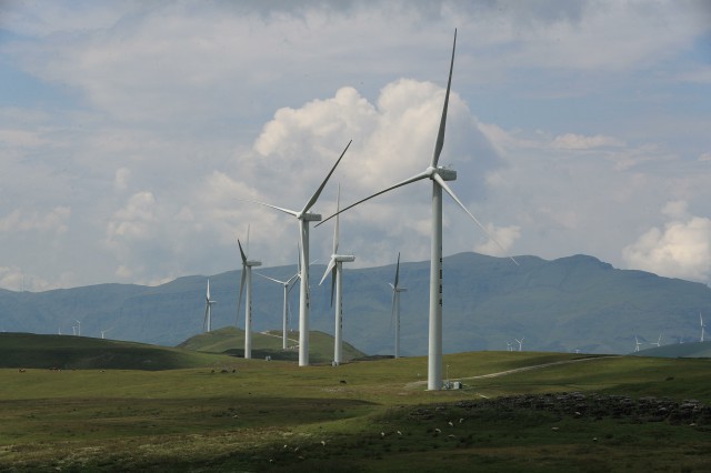 “风力发电拥有清洁环保的优点,在未来发电格局中具有巨大潜力。2017年赖石山风电场发电量为3.4949亿千瓦时,风场平均利用小时为2532小时;2018年计划发电量为4.9亿千瓦时,实现了经济、社会、环境三个效益的完美统一。”中国国电云南新能源有限公司赖石山风电场海坝新厂沟项目经理邓四光介绍说。的确,风能是自然界取之不尽的能源,且十分环保。在赖石山风电场,放眼望去,青山之间,牛羊点缀,本就美不胜收,加之一个个转运的电机成了赖石山新的风景,令人心旷神怡。风电项目,这个绿色清洁能源成了巧家转运的经济。
