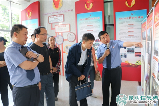 而后,西山区人民检察院相关负责人带领大家参观党建成果展示栏,并对党组织建设和队伍建设的先进经验、为民服务接待大厅、未成年人“西山春蕊”工作室和党建工作活动室进行了介绍。