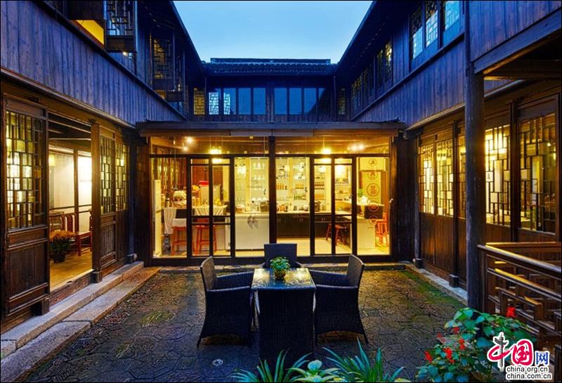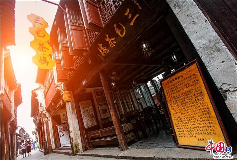 中午,蜿蜒的水巷行船不止,清凉的备弄人影绰绰;午后,一杯闲茶,一段丝竹评弹,一卷书香,一段惬意的艺栈时光,和心上人儿静静享受古镇恬静的时光。