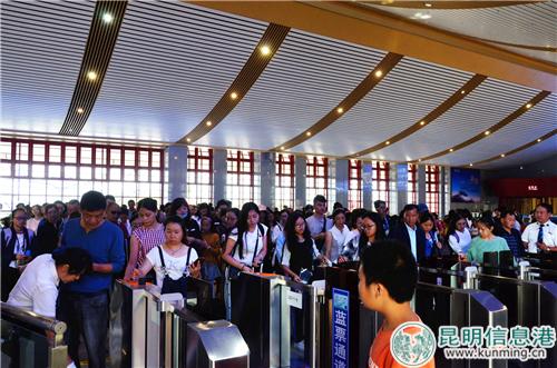 旅客在楚雄站有序排队检票进站乘车。郭婧/摄