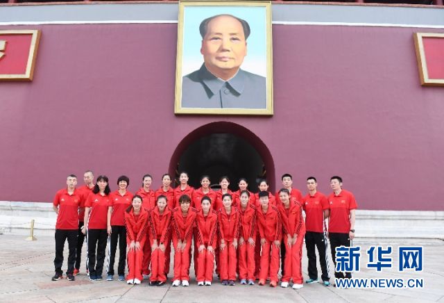 中国女排在天安门广场观看升国旗仪式 新华社记者李俊东/摄