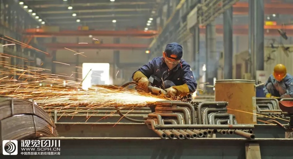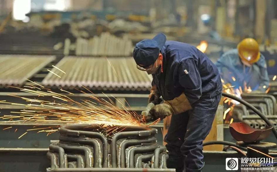 工人身穿厚厚工作服,在火花飞溅的闷热厂房内保质保量完成生产任务。