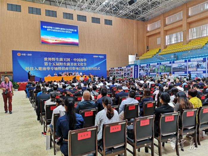 8月9日,中国·南华第十五届野生菌美食文化节举行“科技入楚南华专场暨招商项目推介签约”仪式,省州相关专家和中投国际集团实业有限公司等近百家企业及省内外十余家商会代表汇聚一堂,围绕“科技推动”和“创新驱动”主题,共叙友情、共寻商机、共谋发展,最终达成31个项目签约。