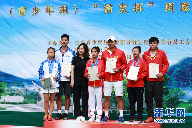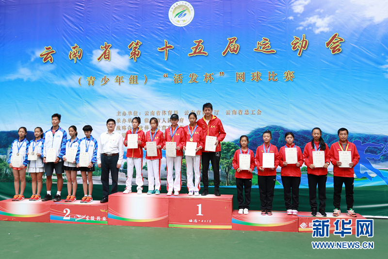 青少年组网球比赛乙组女子单打比赛颁奖现场。(新华网 李林蔚 摄)