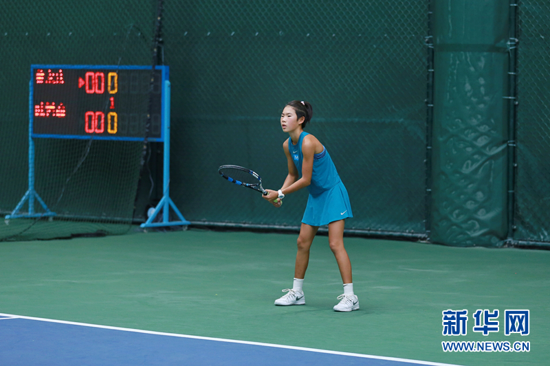 来自昆明的12岁网球选手蔡佳彤。(新华网 李林蔚 摄)