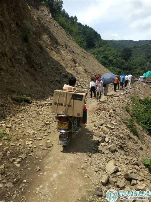 8月10日,从湖南赶来的企业家于杰和昆明之美负责人顾中国连夜乘车到红河县城,先期运达的家用电器和棉被由越野E族红河分队的12辆汽车装载,11日一大早浩浩荡荡奔赴苏机寨。爱心车队经过6小时翻山越岭跋涉,在距村寨3公里处停了下来,1公里左右的道路被大雨冲垮,爱心物资只能由等候在此的村民用肩扛或者用摩托车运到1公里外,再用农用车运到苏机寨,于杰、顾中国和30多名爱心人士步行3公里淌小溪踩着搁脚的石子路爬到位于山顶的村寨。