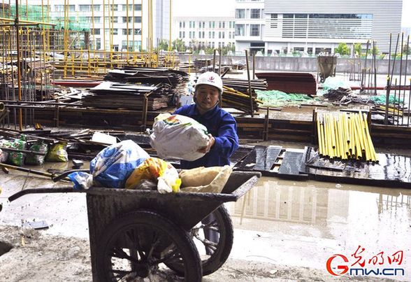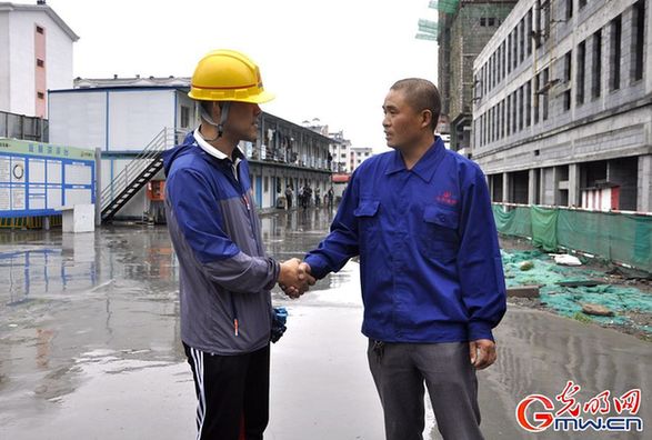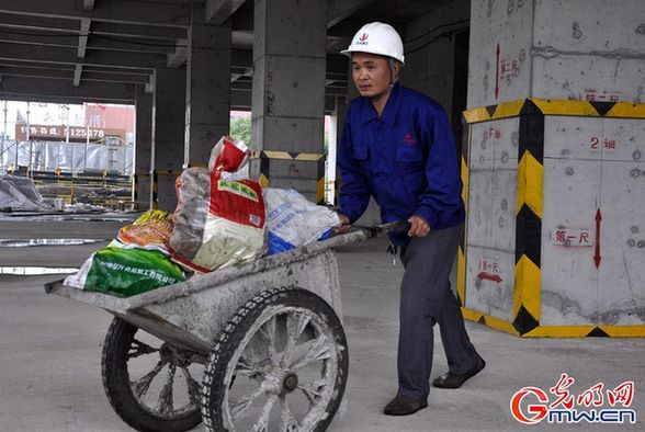 龙勇军说,在捐献造血干细胞打动员剂后,身体稍微感觉有点酸,后面体力很快就恢复了。如今两年过去了,在工地上推水泥、拧钢筋、爬梯子,样样不输给工友。(李政葳/摄)