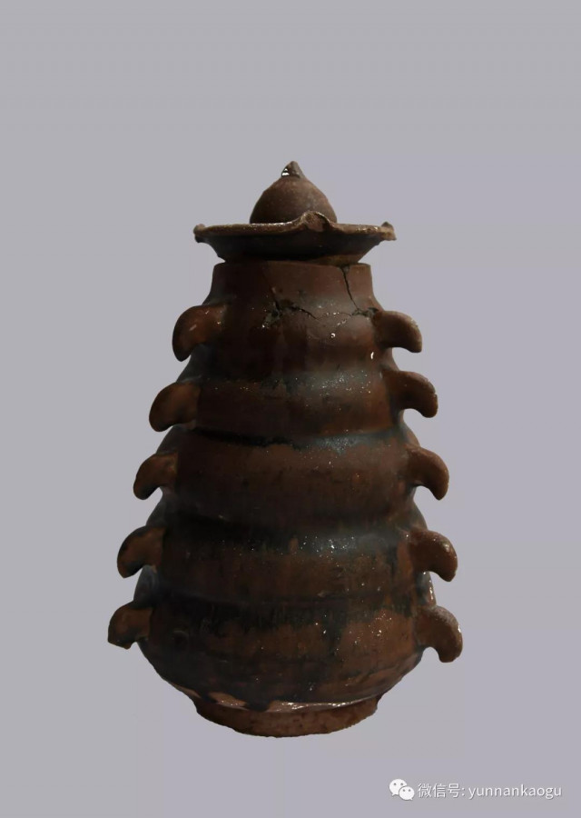 部分酱釉罐造型制作奇特,近似多层宝塔状,部分器物带有器盖。