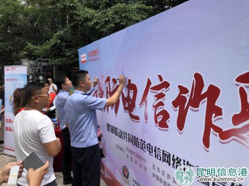 记者合宇聪 8月15日下午,昆明市公安局五华公安分局护国派出所召集辖区22家银行网点召开“警银反电诈联盟”启动仪式,与各单位签订了联盟协议,共同防范电信诈骗。