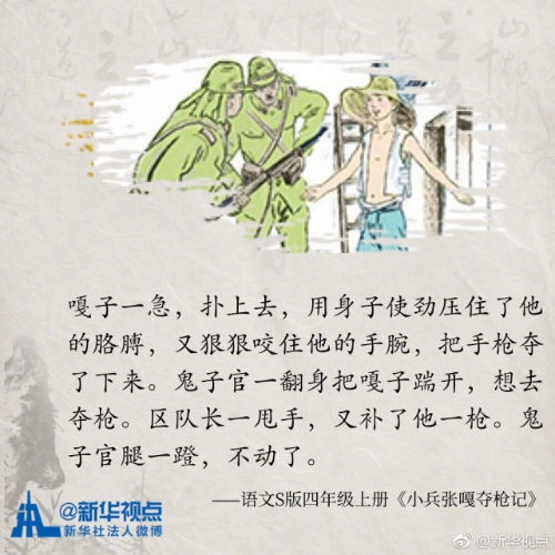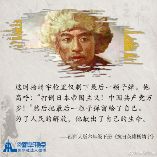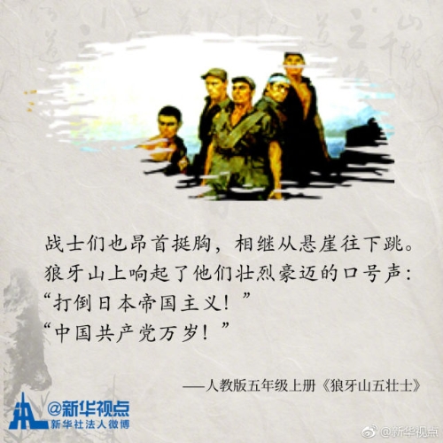 【你还记得吗?那些年小学课本里的抗日英雄】将日本侵略者送入八路军包围圈的放牛娃王二小、宁死不屈纵身跳下悬崖的狼牙山五壮士……出现在小学课本中的英雄故事让我们感动,更记住了信仰和责任。翻开课本,让我们一起重温那些抗日英雄吧!