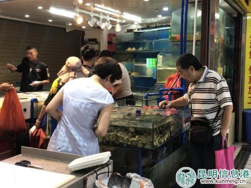8月14日上午10点30分左右,记者随创文集中采访团走进了位于五华区的和平村海鲜生鲜市场(国服店)里,宽敞的过道、整齐划一的摊台以及明亮的灯光,给人一种在逛超市感觉。“市场每天打扫3次,包括排水沟的清扫,保证市场环境整洁,空气没有异味。”市场相关负责人介绍,该市场还统一配备了电子秤,每周都会固定检查,不定时的抽查。