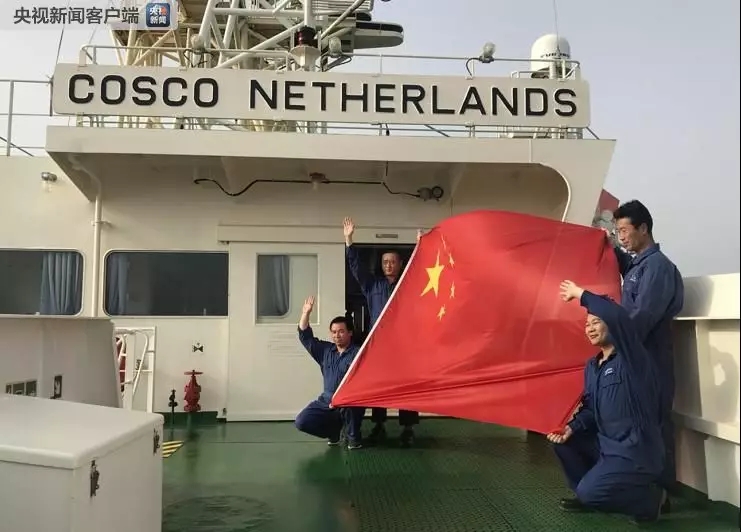 “中远荷兰”号船员在亚丁湾这个极为特殊的海域得到了中国海军近距离的护航后十分激动,挥舞国旗高呼“中国海军你们辛苦了!”