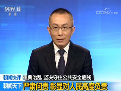 这次严肃问责、重典治乱,彰显了以习近平同志为核心的党中央全面从严治党、坚定去疴除弊的担当精神,彰显了党中央对人民群众切身利益的尽责担当,也回应了人民群众的重大关切,给了人民群众一个负责任的交代。
