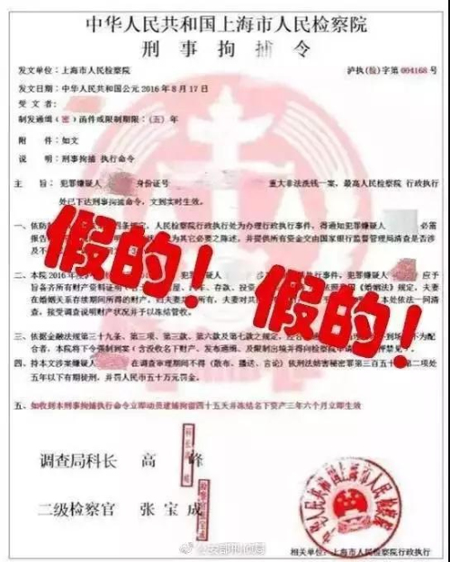 刘女士点开网站链接,瞬间傻了眼,一时间惊慌失措,因为她看到了一份涉嫌金融诈骗案的“逮捕令”有她的姓名、身份证号、住址同时还有她的照片!最底下还有其他检察官的签名,加盖了大红公章
